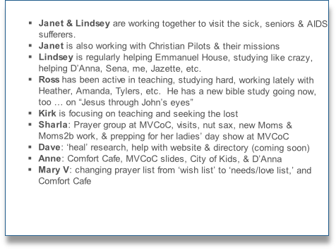 I expect this to be my last ‘post’ here … as far as “news.” From now on, please find all your local OC news on our local G+ page. Lindsey and I both post things up there, including prayer requests and newsy items. It’s our “bulletin board” just for us. We have the ability to control who sees what, so some of us see more there than others. If you have something that you want shared … get word to me or Lindsey and we’ll put your prayer request or praise God item or whatever up there for the group.